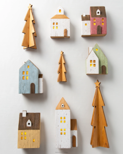 Vieille ville de Noël en bois éclairée FF66100 Balsam Hill décoration LED claire – pile requise