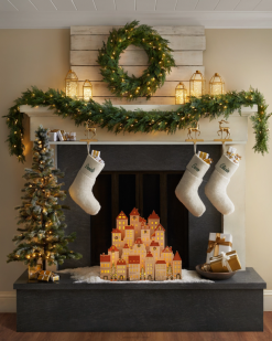village de cheminée de Noël en bois FF6689 Balsam Hill décoration gracieux