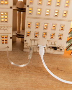 Vieille ville de Noël en bois éclairée FF66100 Balsam Hill décoration LED claire – pile requise