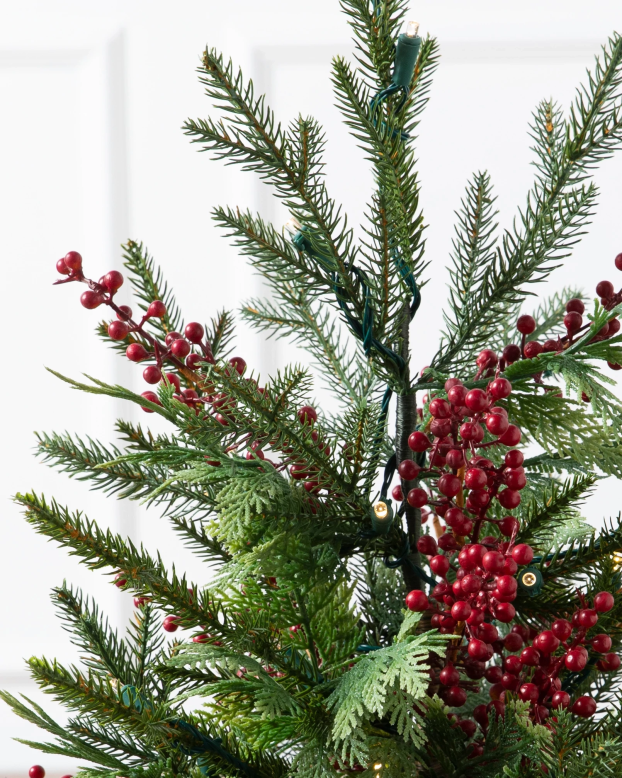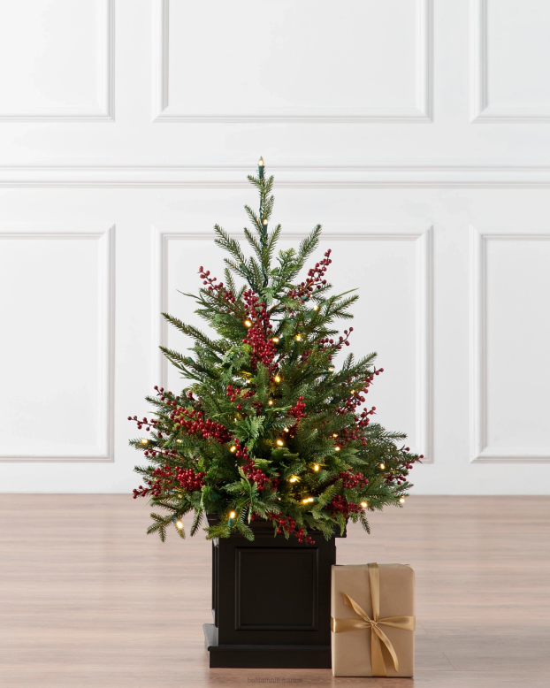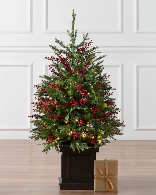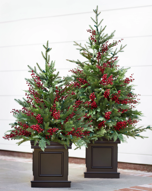 arbre en pot à feuilles persistantes aux fruits rouges d’extérieur FF66157 Balsam Hill décoration LED claire