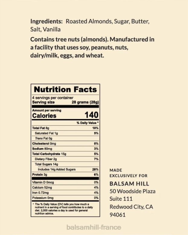 - allergènes : contient des noix, des amandes, des pacanes, des pistaches et des noix de cajou. fabriqué dans une installation qui traite également du soja, des arachides, des noix, des produits laitiers/lait, des œufs, und blé.