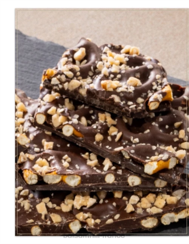- 9,25 oz. écorce de bretzel au caramel et au chocolat noir