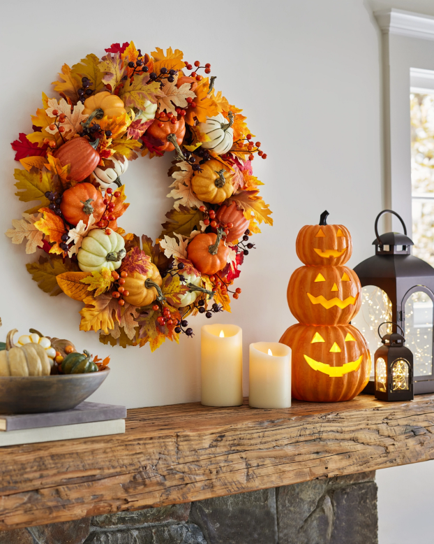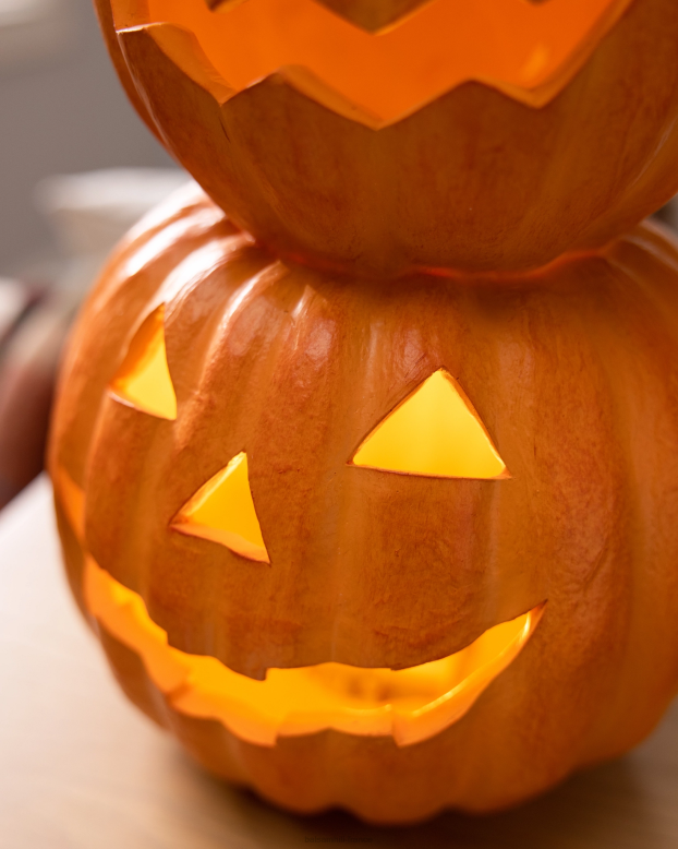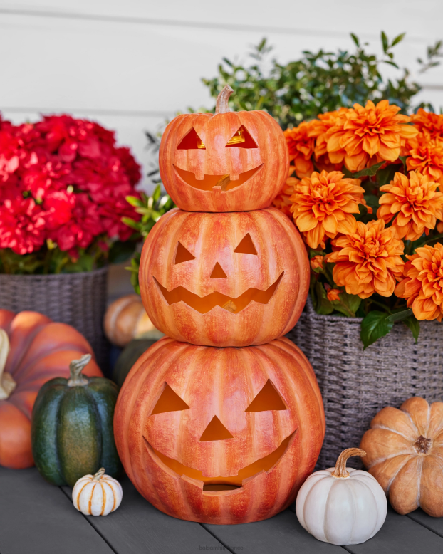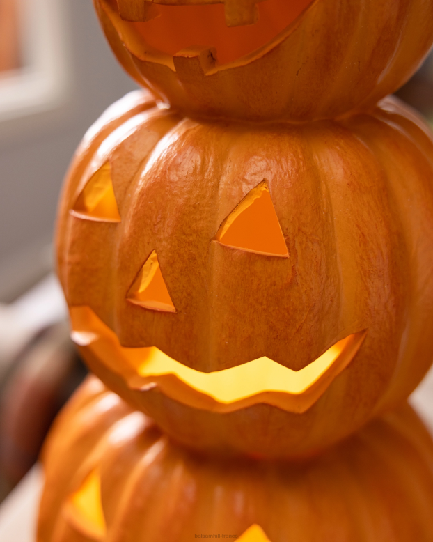 Transformez vos réunions d’Halloween d’un cran. ces citrouilles-lanternes empilées apportent trois fois plus de plaisir lorsqu’elles sont ajoutées à des décorations de table ou comme accents sur votre cheminée.