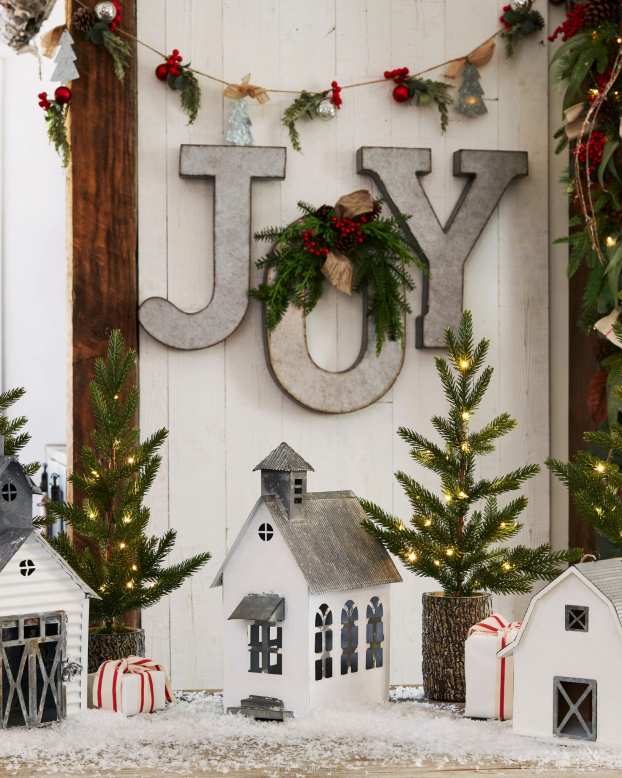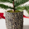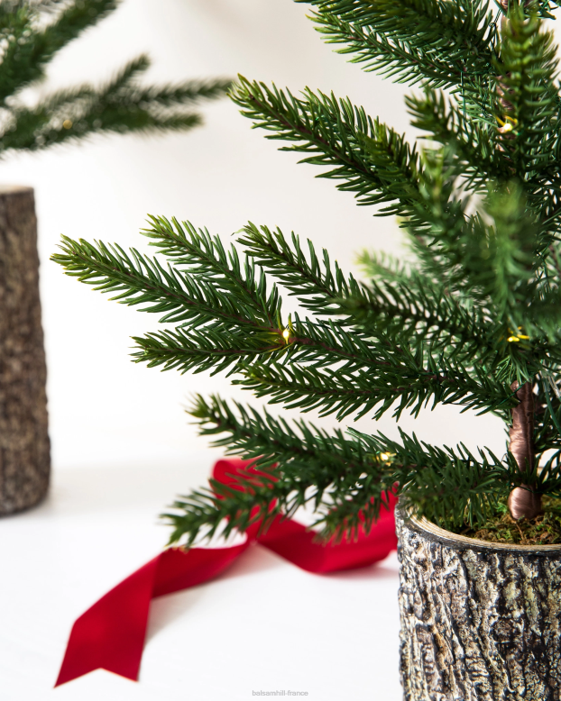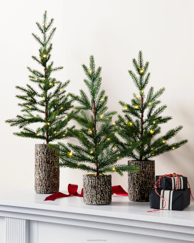 Accueillez la saison avec le look charmant des bébés conifères. niché dans des pots en écorce texturée, cet ensemble ajoute une touche rustique aux manteaux de cheminée et aux décorations de table.