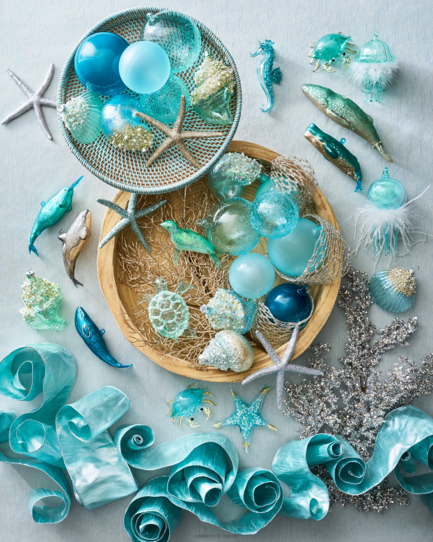 ensemble d’ornements chic côtier FF6670 Balsam Hill décoration LED claire – pile requise