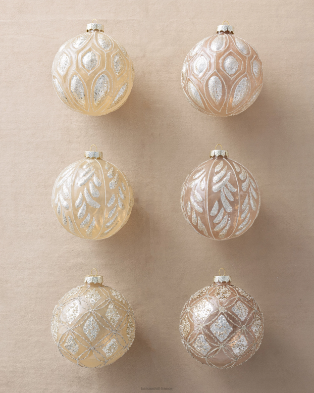- comprend des boules et des embouts assortis dans des teintes champagne avec des détails complexes et des accents chatoyants