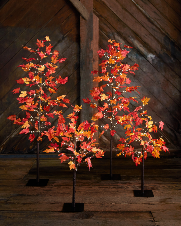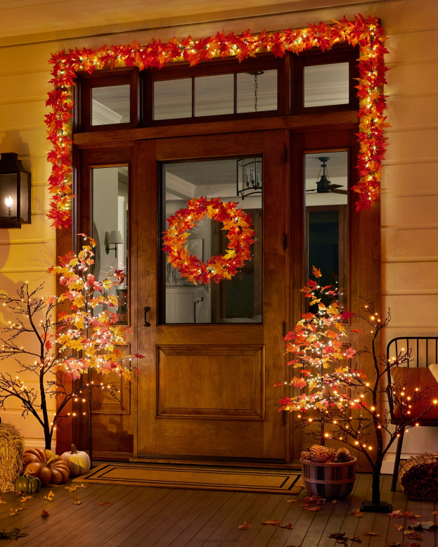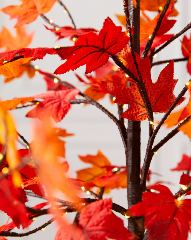 ramenez à la maison la sensation familière des soirées d’automne fraîches avec nos arbres à LED. des lumières de riz orange enroulées autour des branches donnent aux feuilles une lueur ardente, créant une toile de fond enchanteresse pour votre décoration automnale. placez-les en groupes sur le porche ou près du foyer pour rehausser votre décor de Thanksgiving ou de récolte.