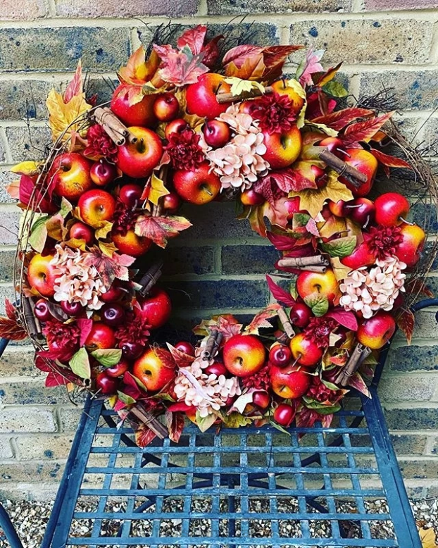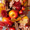 - tous les produits de cette collection présentent une gamme de pommes d’automne bicolores, de bâtons de cannelle, d’hortensias, feuilles d’érable et feuilles de chêne avec vignes entrelacées