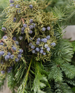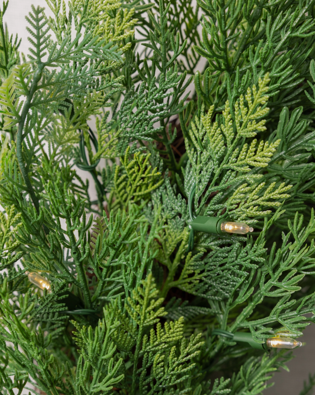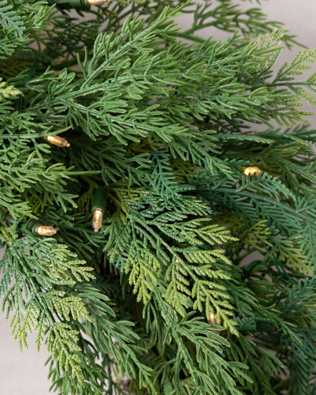 - tous les produits de cette collection présentent un feuillage de cèdre et de fougère réaliste.
