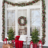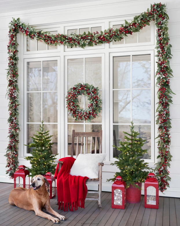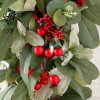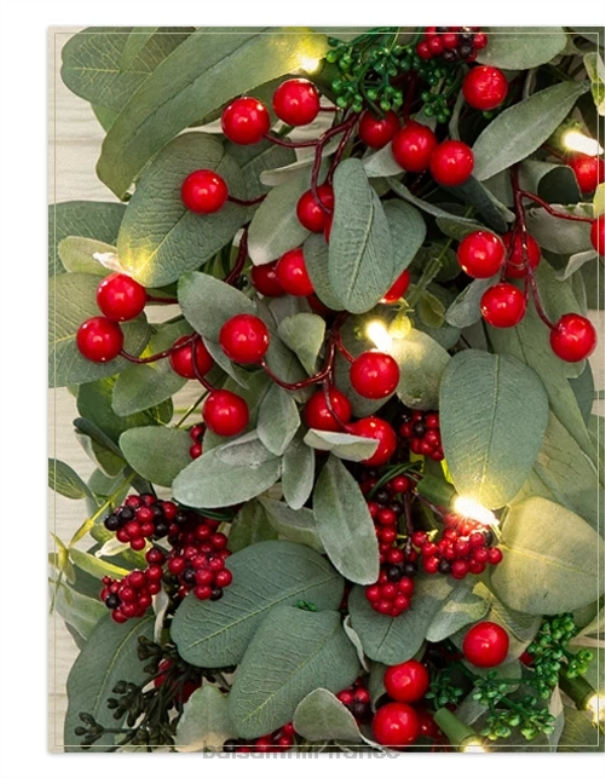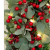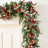rehaussez l’apparence de vos vacances en décorant avec des feuilles d’eucalyptus luxuriantes. des touches de baies rouges et des brins de gypsophile ajoutent une touche vivante à votre porche, votre entrée et votre cheminée.