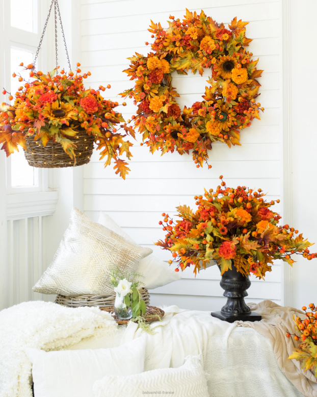 - Tous les produits de cette collection comportent un éventail de tournesols, de mamans et de feuilles d’automne mélangées