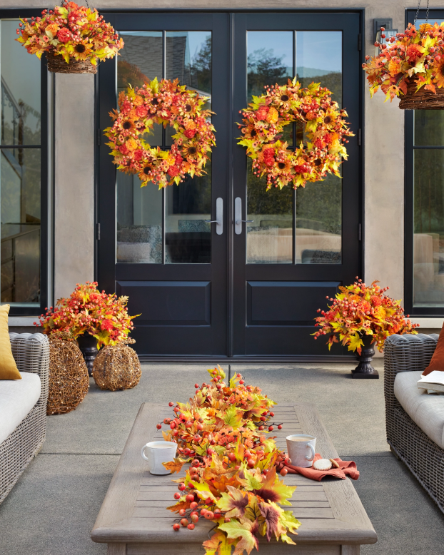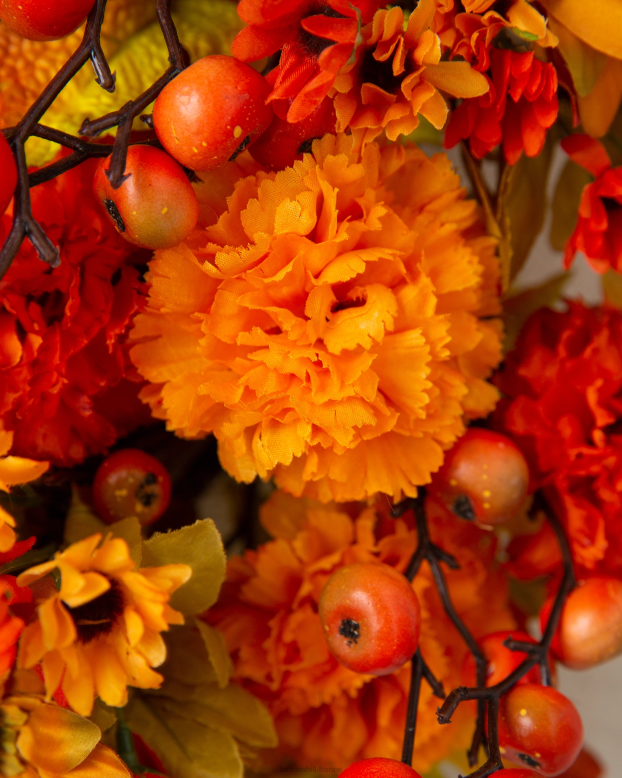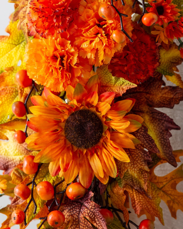 animez les décorations d’automne avec un mélange coloré de tournesols, de feuilles d’automne et de mamans. cette collection d’extérieur est protégée contre les UV pour conserver sa beauté et son éclat, et crée un superbe affichage lorsqu’elle est regroupée sur le porche ou le patio.
