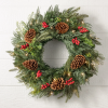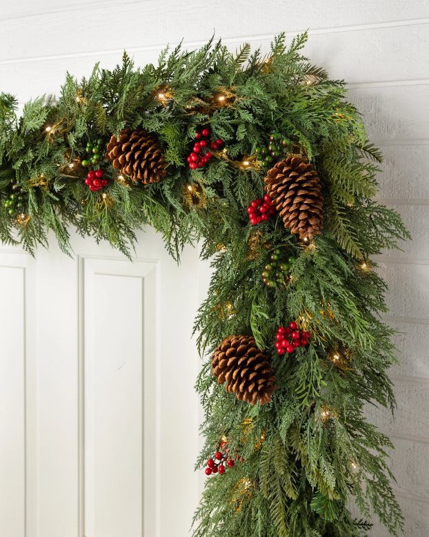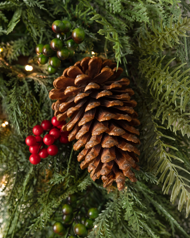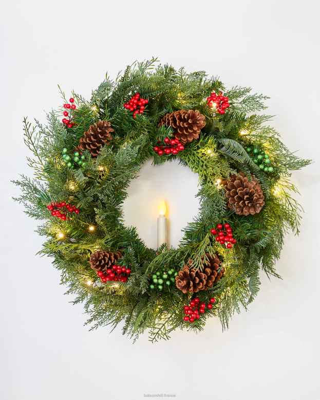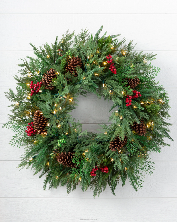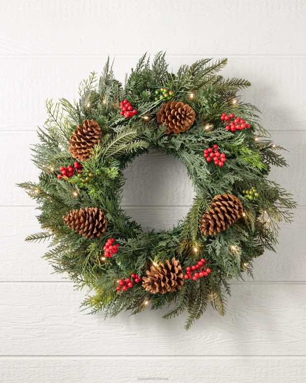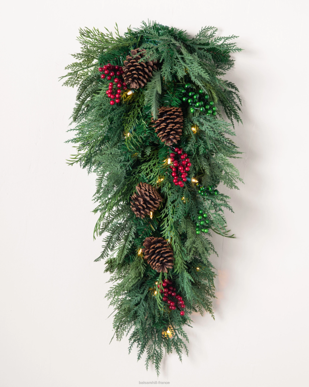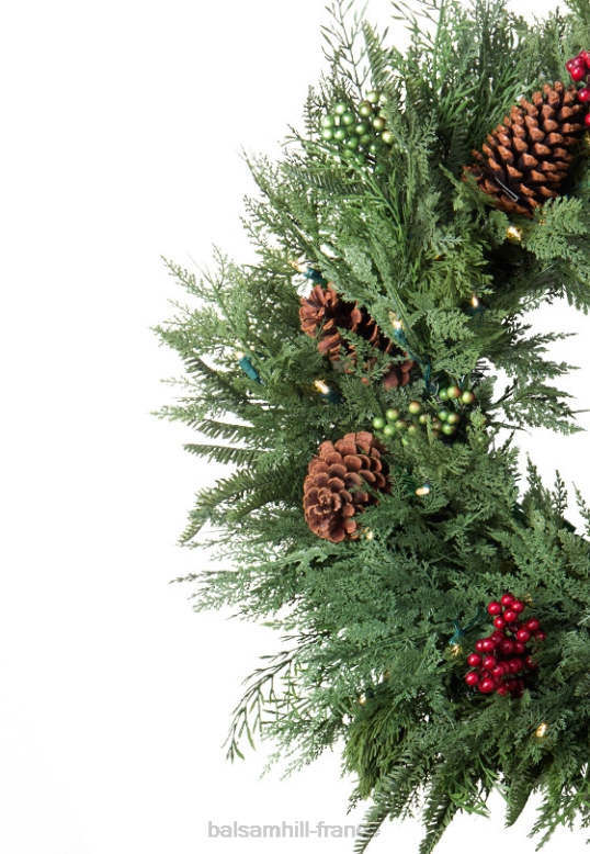 - tous les produits de cette collection présentent un mélange de feuillages de cèdre et de sapin réalistes, agrémentés de grappes de baies rouges et vertes et de pommes de pin naturelles.