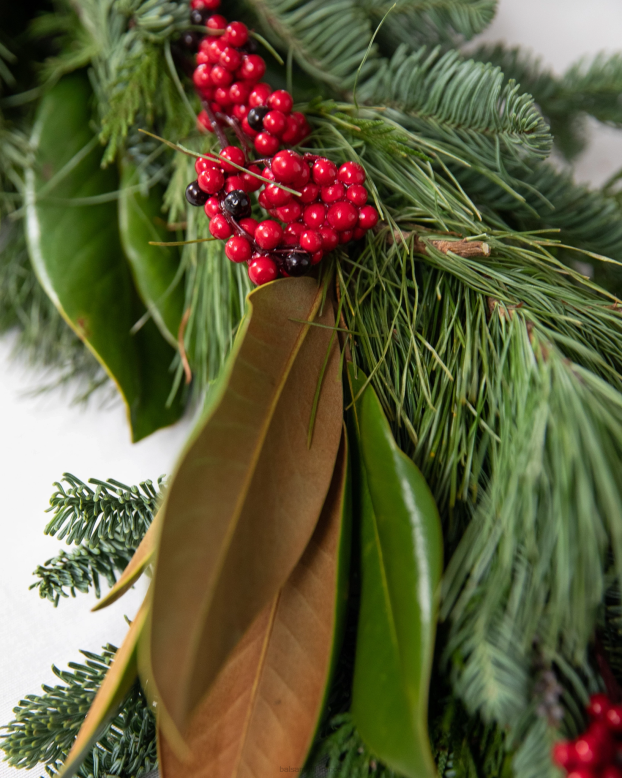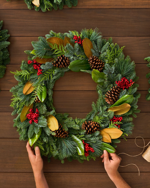 - des conifères de Noël de qualité sont récoltés dans le nord-ouest et disposés à la main en couronnes et guirlandes.
