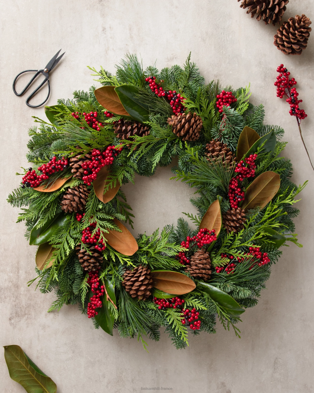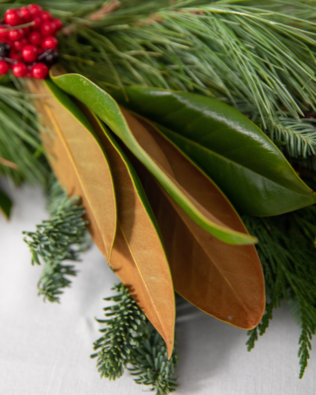- tous les produits de cette collection contiennent du sapin noble frais, branches de cèdre et de pin, feuilles de magnolia fraîches, pommes de pin naturelles et fausses baies.
