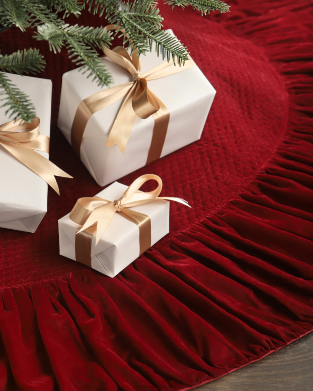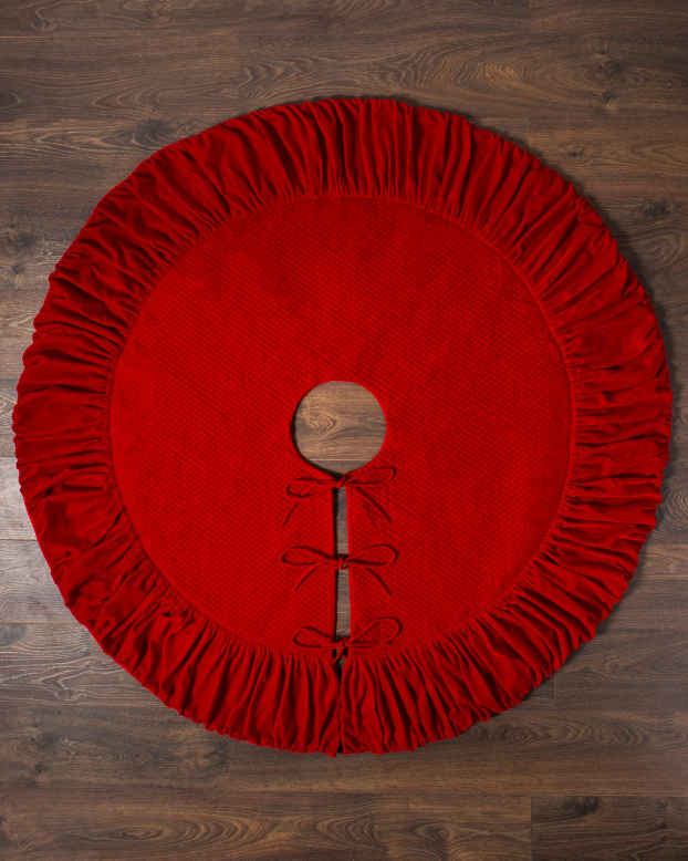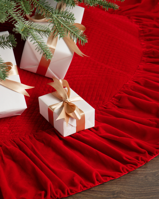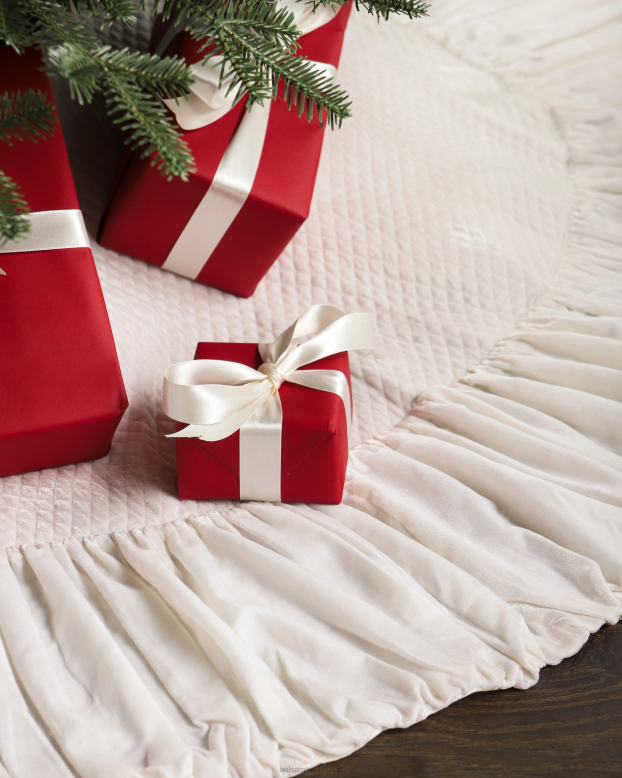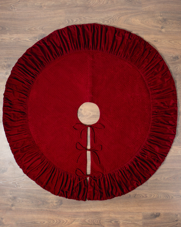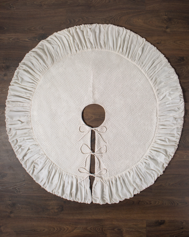 Ajoutez une belle texture à votre sapin de Noël avec une jupe de sapin intemporelle. son centre matelassé et sa bordure plissée complètent le look invitant de votre décor de vacances.