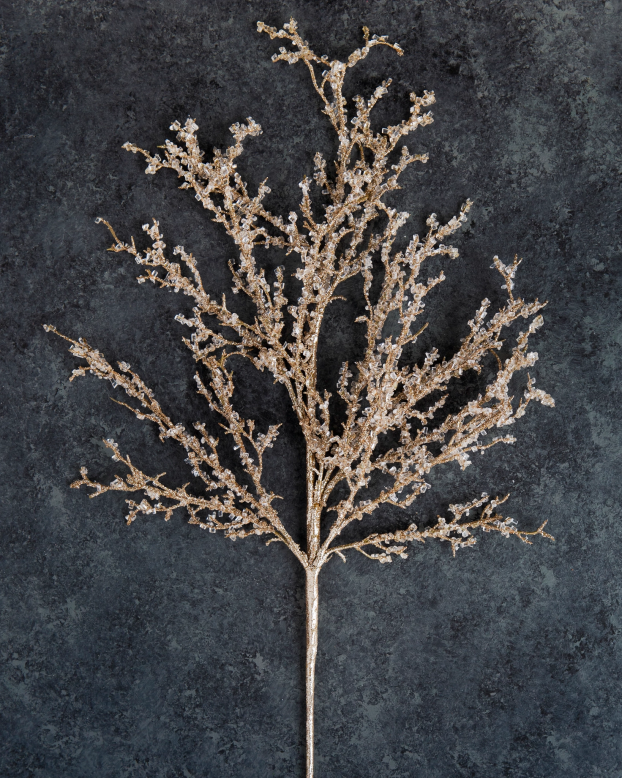 - comprend des grappes de perles taillées en cristal sur des branches dorées scintillantes