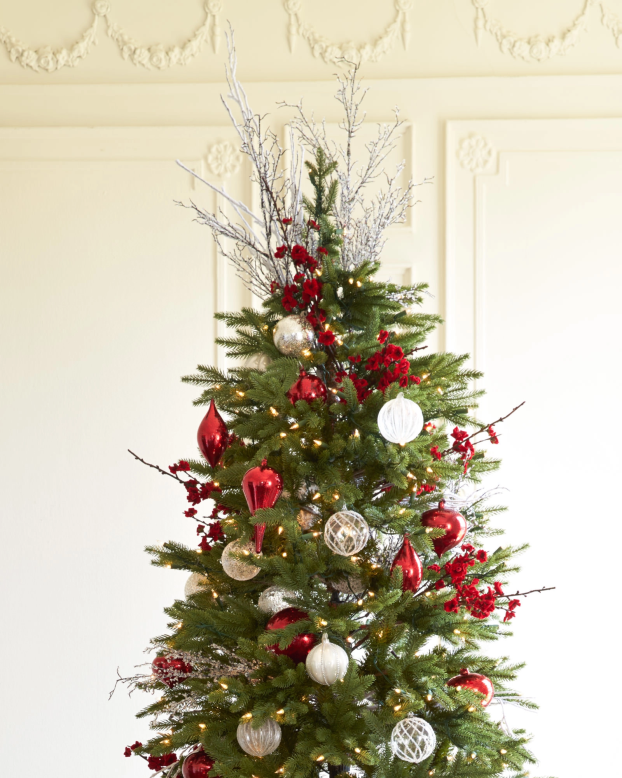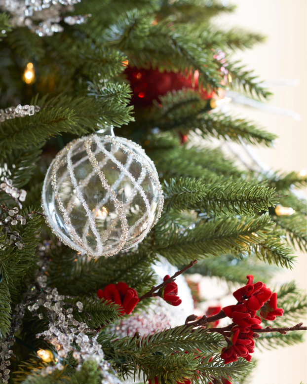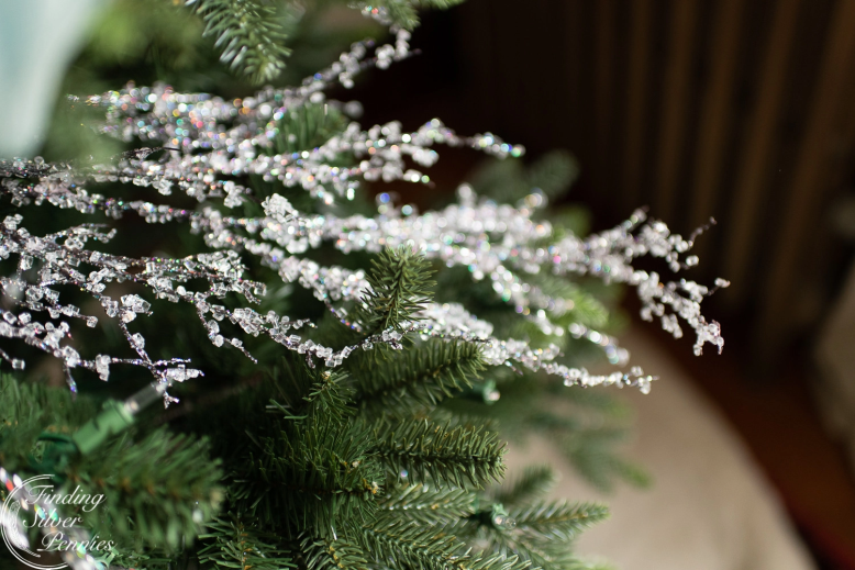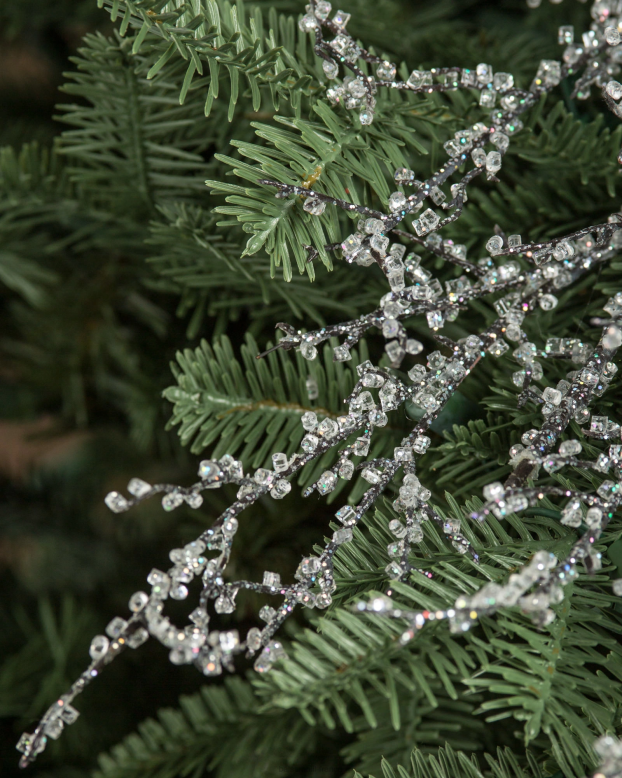 - comprend des branches argentées scintillantes avec des perles taillées en cristal