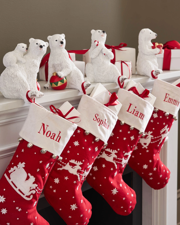 laissez nos ours polaires veiller sur vos précieuses chaussettes de Noël avec joie. sculptés avec beaucoup de talent artistique et de réalisme, ces adorables ours sont représentés dans des poses ludiques gambadant avec différentes surprises de vacances. choisissez l’un des quatre modèles ou mélangez-les pour créer votre propre famille arctique.