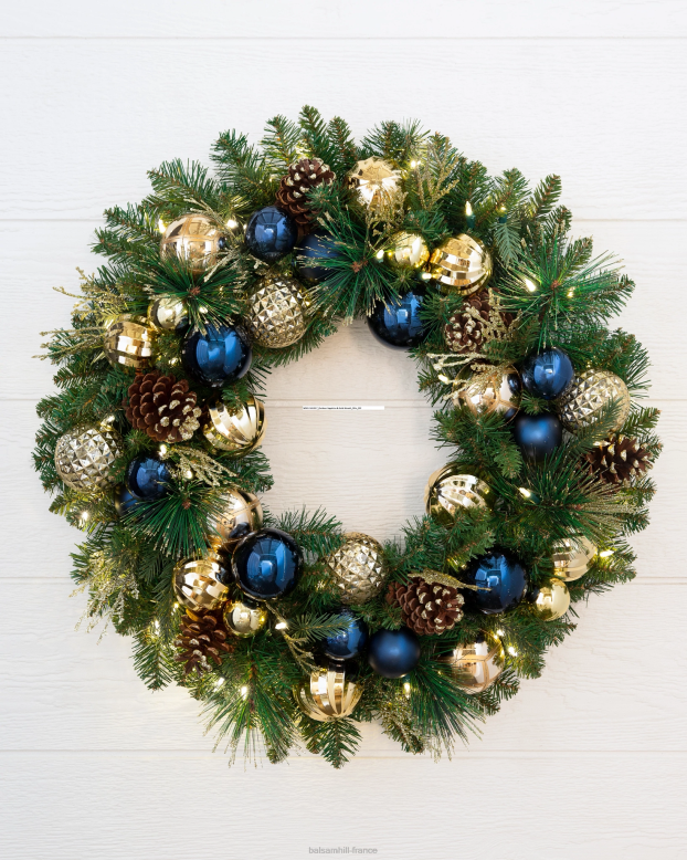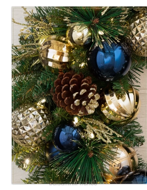 - Tous les produits de cette collection présentent un feuillage luxuriant rehaussé de matériaux incassables. ornements dorés et bleus et pommes de pin dorées