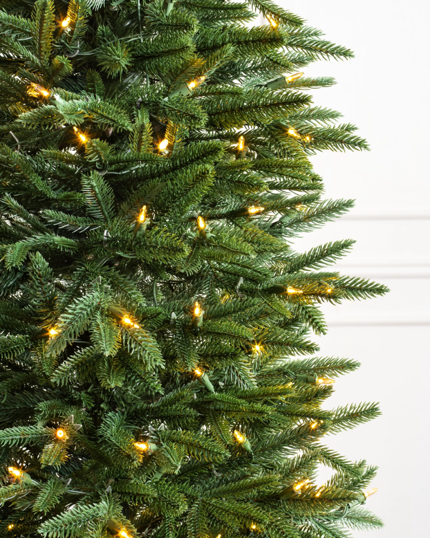 exposant D’une couleur vert riche et profond, le sapin de Revelstoke possède une grande quantité de véritables aiguilles pour un réalisme sans précédent. Doté de tiges brunes délicatement peintes et de plusieurs couches de branches inclinées vers le bas avec des pointes effilées qui se courbent vers le haut, cet arbre offre une joie et un esprit sans limites, tout comme un véritable arbre de Noël.