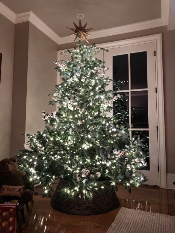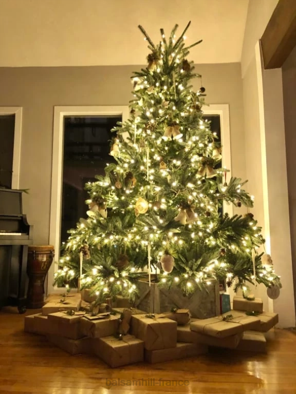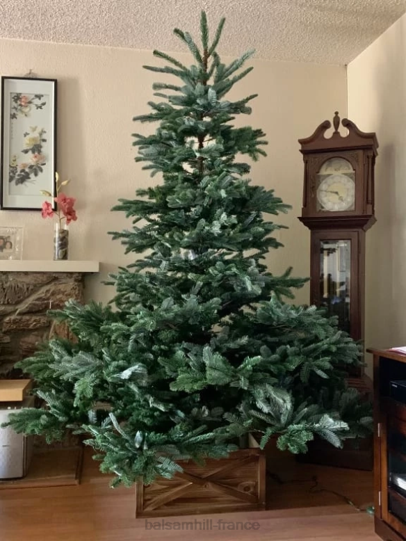 les aiguilles vert foncé et le profil plein en forme de poire créent un superbe décor, tandis que les longues branches au sommet de l’arbre s’étendent vers le haut pour un aspect plus naturel.