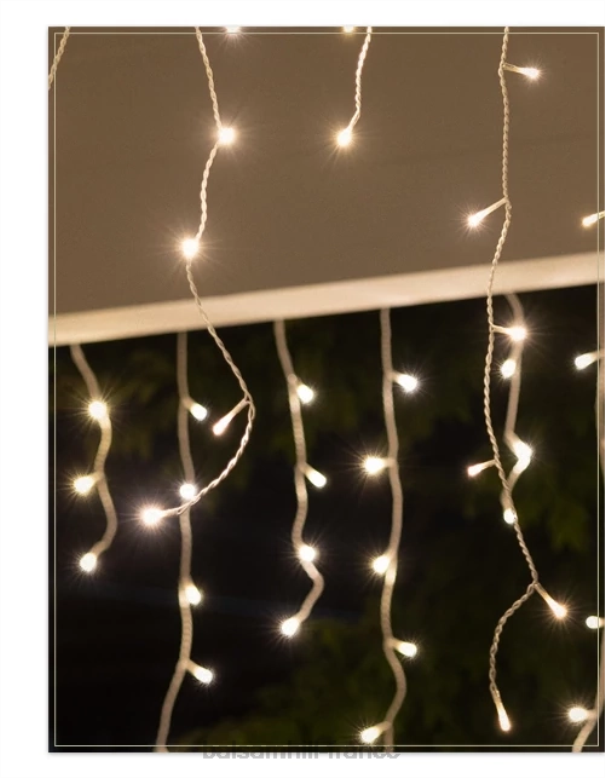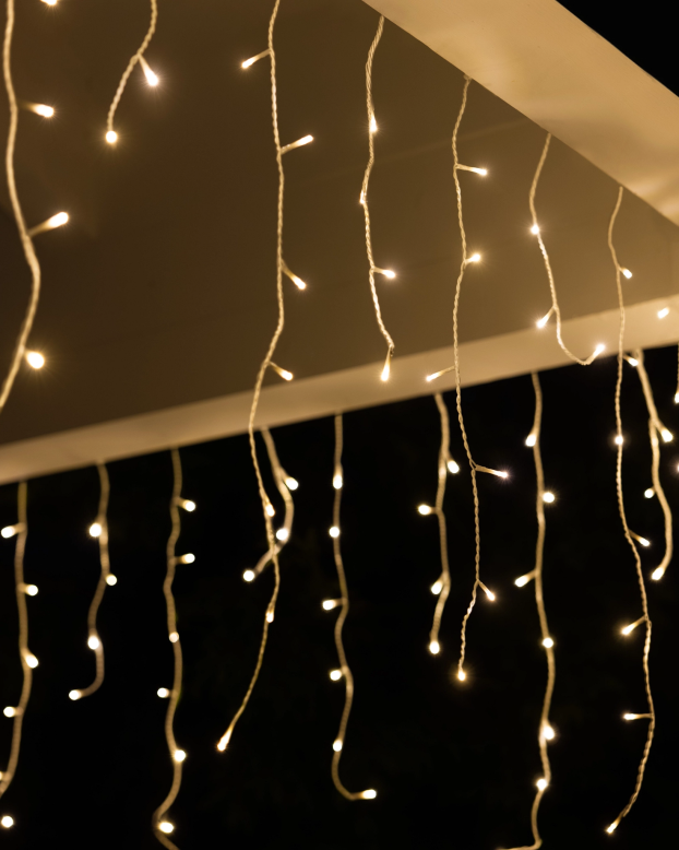 - Connectez jusqu’à 3 000 lumières LED (12 guirlandes lumineuses en forme de glaçon) avec un transformateur de 12 W