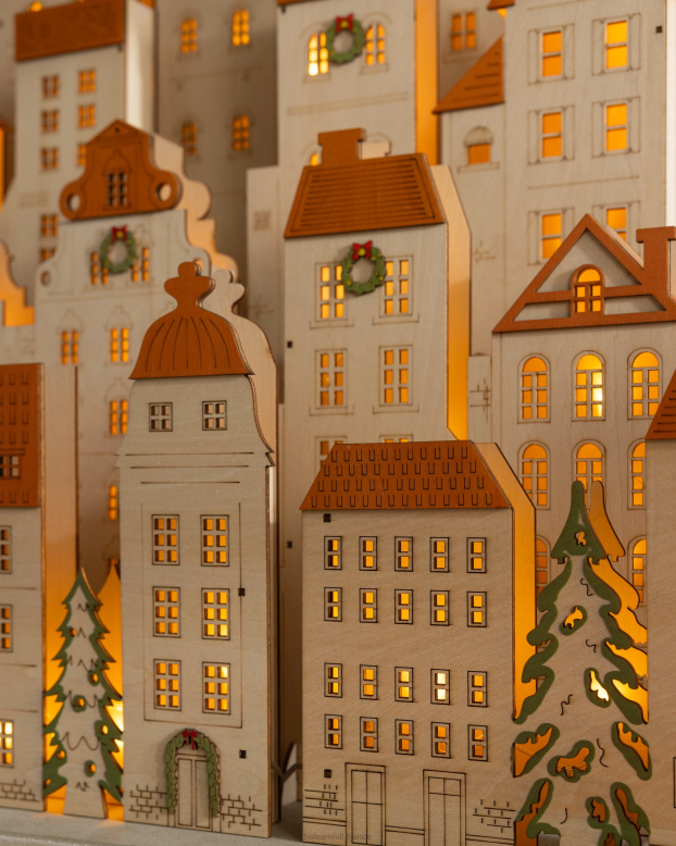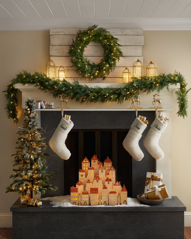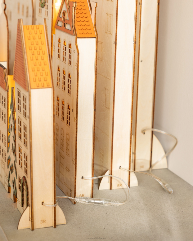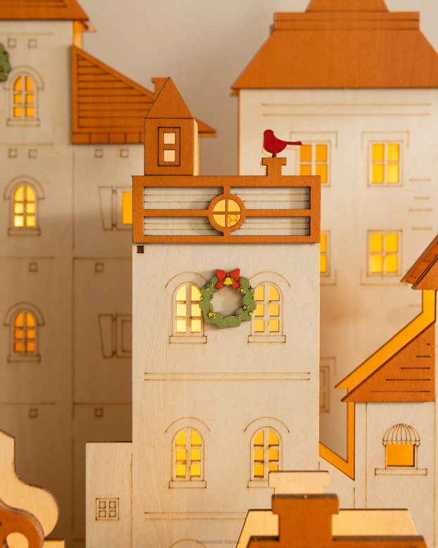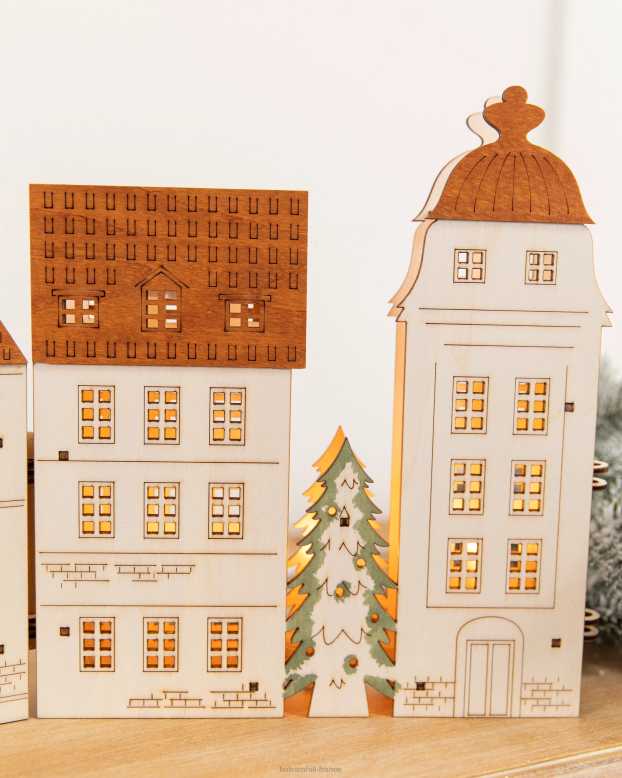 créez une scène intemporelle d’inspiration victorienne sur votre cheminée ou autour de votre arbre. cette ville miniature pré-éclairée apporte un look vintage à votre décoration de vacances.